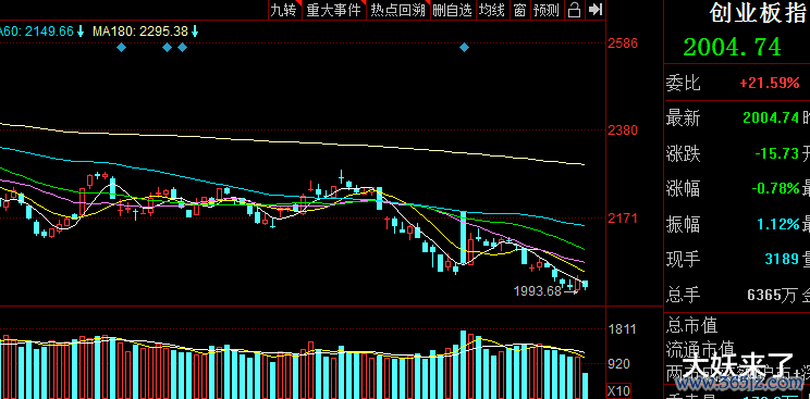 创业板目前也没有止跌的迹象,